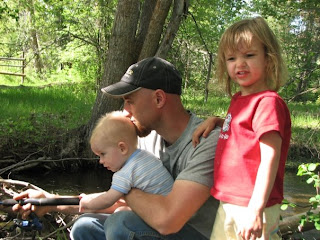When I saw that Living and Learning was doing this thing where you post pictures of your kids enjoying nature, I knew I had to participate. See the button on the right and click on it to participate! Here’s one of my man taking our kids fishing on the creek that runs through his parents’ property. I love how my hubby is smelling my son’s fuzzy head, and the look on my daughter’s face makes me laugh every time I see it.